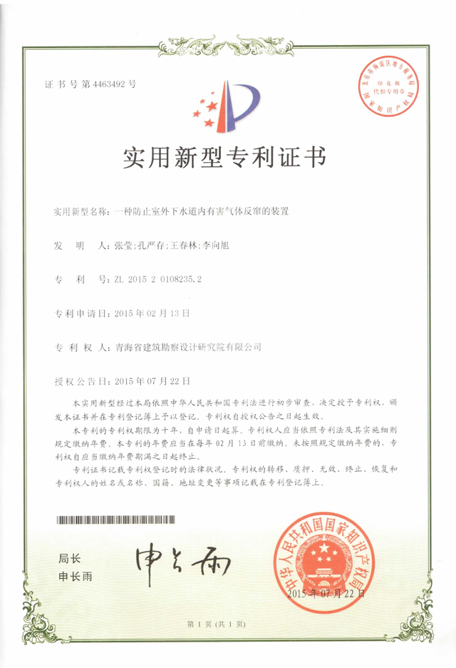 一種防止室外下水道內(nèi)有害氣體反竄的裝置(發(fā)明人:王春林、李向旭、孔嚴(yán)存、張瑩)