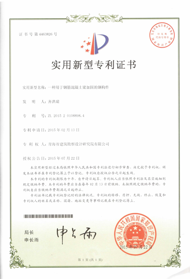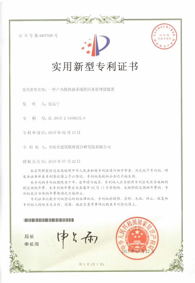 2015年度,我公司依靠行業(yè)科技人才的優(yōu)勢,加大研發(fā)力度,專利技術(shù)取得了顯著成效。按照國家有關(guān)專利技術(shù)申報工作要求,共申報專利技術(shù)9項,經(jīng)國家知識產(chǎn)權(quán)局核批,其中8項獲得“實用新型專利證書”,這8項專利技術(shù)分別為: