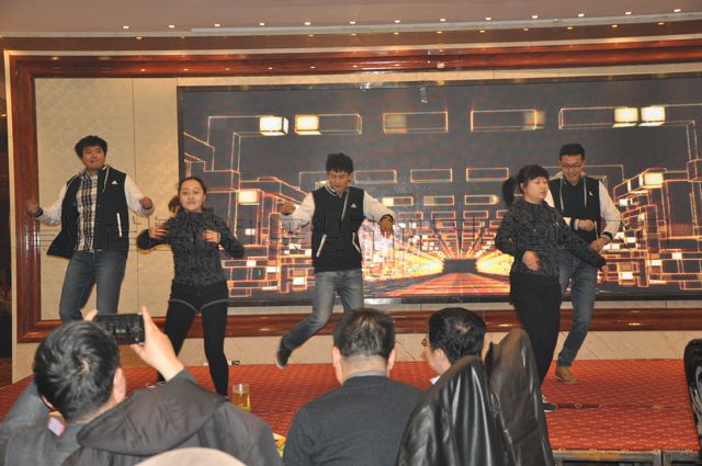 公司總結(jié)表彰會(huì)結(jié)束后,2016年迎春文藝演出閃亮登場(chǎng)。隨著兩位主持人華麗的開場(chǎng)詞,“才藝達(dá)人”精心準(zhǔn)備的歌曲、舞蹈節(jié)目為員工送上了新春的祝福。節(jié)目既突出了節(jié)儉大方的格調(diào),又不失歡快熱烈的氣氛?,F(xiàn)場(chǎng)不時(shí)爆出陣陣熱烈的掌聲。同時(shí),在節(jié)目演出中還穿插抽獎(jiǎng)活動(dòng),邀請(qǐng)公司各領(lǐng)導(dǎo)公開抽取幸運(yùn)獎(jiǎng)。演出精彩落幕后,公司黨委書記沈波立致祝酒詞。整個(gè)團(tuán)拜會(huì)場(chǎng)面,燈火通明,熱鬧祥和,觥籌交錯(cuò),祝語(yǔ)飛揚(yáng),董事長(zhǎng)王力明等公司領(lǐng)導(dǎo)高舉酒杯,沿桌為全體員工提前拜年。大家齊聚一起,共同慶祝2015年度取得的輝煌成績(jī),在笑語(yǔ)歡聲中暢想著2016年的美好愿景。