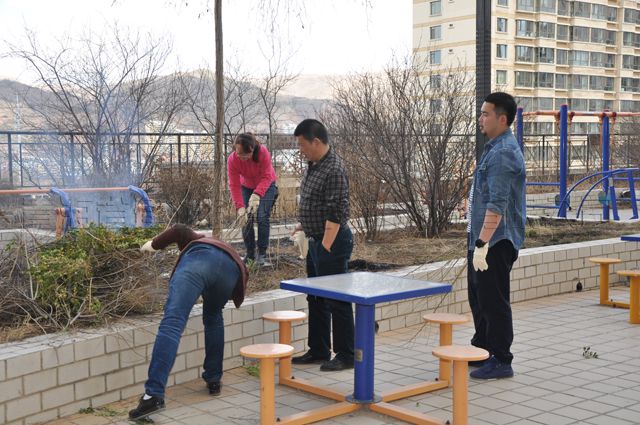 四樓綠化休閑平臺,集籃球場、健身區(qū)和綠化帶三大塊組成。正是萬物待春的時節(jié),高原的春天比江南的春來得遲些,而一旦被春風(fēng)盯上了梢,姹紫嫣紅的時刻已為時不遠。為了迎接這濃濃的春意,這次義務(wù)勞動是美化休閑平臺,修剪花草,平整綠帶,撿收枯條,清理雜物,給春天一個盛放的儀式。