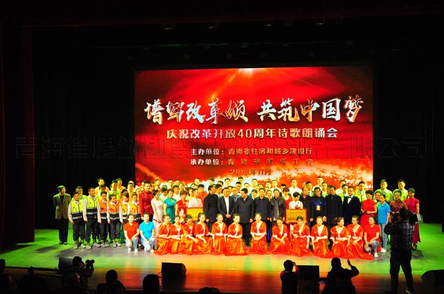為紀念改革開放40周年,熱情謳歌改革開放以來全省建設(shè)職工在黨的領(lǐng)導(dǎo)下,在經(jīng)濟建設(shè)、政治建設(shè)、文化建設(shè)、社會建設(shè)、生態(tài)文明建設(shè)以及全面建成小康社會、全面深化改革、全面推進依法治國、全面從嚴治黨中取得的偉大成就,2018年11月23日,青海省住建廳、青海省建設(shè)工會在省文化館群星劇院舉辦了“譜寫改革頌,共筑中國夢”—— 省住建廳慶祝改革開放40周年詩歌朗誦會。省住建廳王發(fā)昌廳長、李勇副廳長等相關(guān)領(lǐng)導(dǎo)參加了詩歌朗誦會。